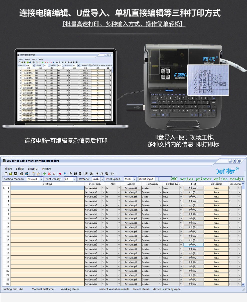 丽标C-280T+电脑线号机